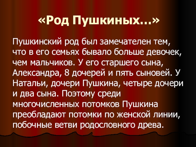 Пушкинский род был замечателен тем, что в его семьях бывало