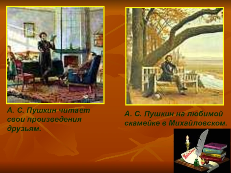 Слайд 13А. С. Пушкин читает свои произведения друзьям.