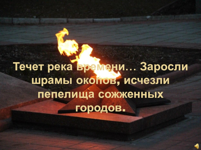 Слайд 2Течет река времени… Заросли шрамы окопов, исчезли пепелища сожженных городов.