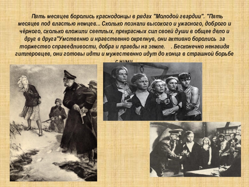 Слайд 13 Пять месяцев боролись краснодонцы в рядах "Молодой гвардии". "Пять месяцев