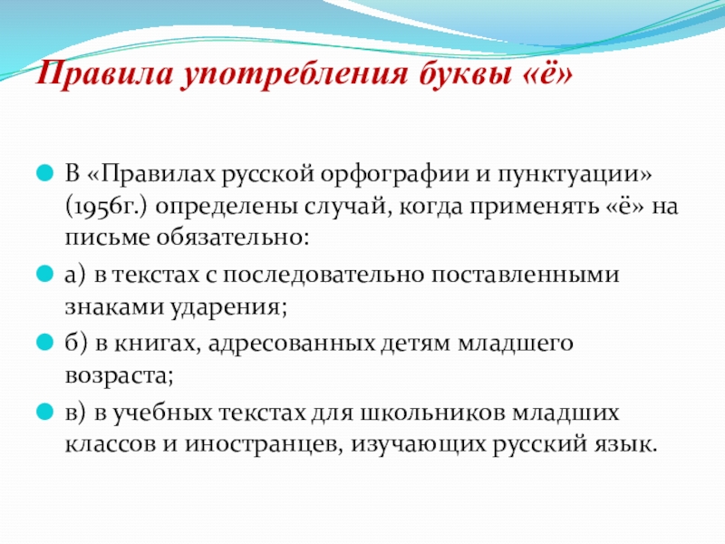 В «Правилах русской орфографии и пунктуации» (1956г.) определены