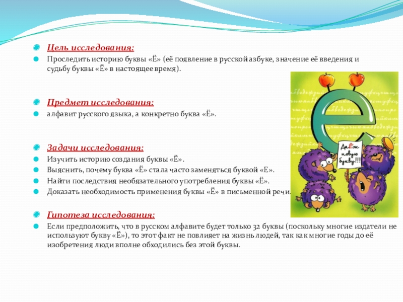 Проследить историю буквы «Ё» (её появление в русской азбуке, значение