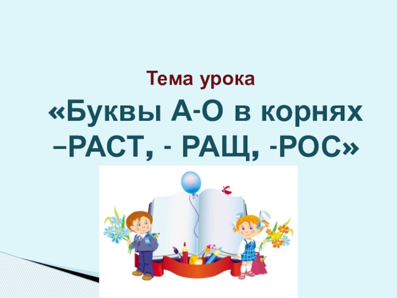 Тема урока «Буквы А-О в корнях –РАСТ, - РАЩ, -РОС»