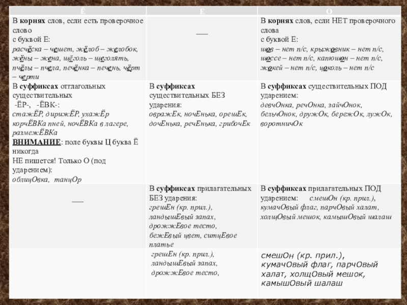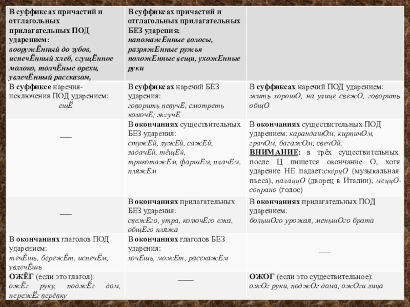 Ш, Ч, Щ и буквы Ц во всех частях слова и во всех частях речи