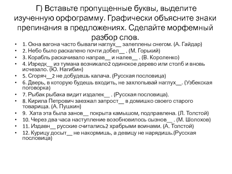 1. Окна вагона часто бывали наглух__ залеплены снегом. (А. Гайдар)
