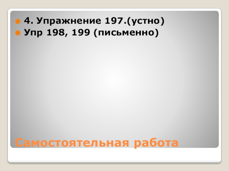 Самостоятельная работа4. Упражнение 197.(устно) Упр 198, 199 (письменно)