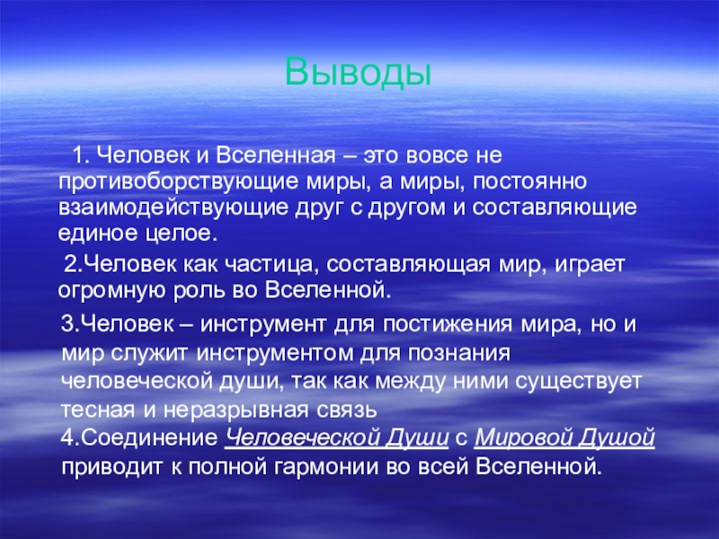 4.Соединение Человеческой Души с Мировой Душой приводит к полной гармонии во всей Вселенной.