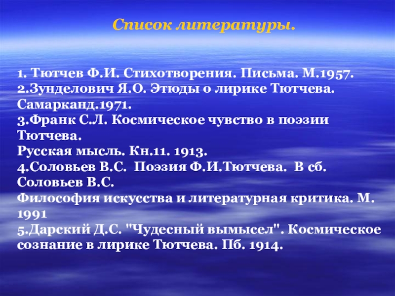 5.Дарский Д.С. "Чудесный вымысел". Космическое сознание в лирике Тютчева. Пб. 1914.