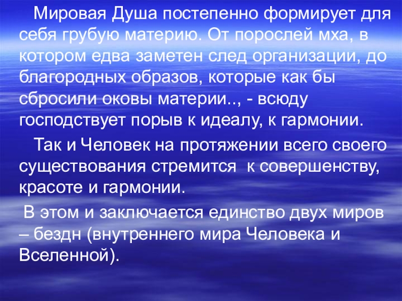Слайд 18 Мировая Душа постепенно формирует для себя грубую материю.