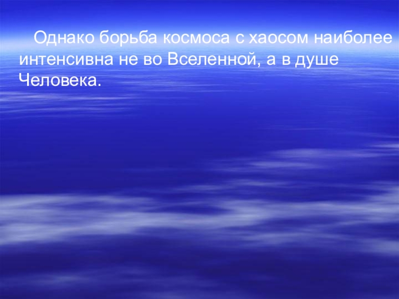 2.Человек как частица, составляющая мир, играет огромную роль во Вселенной.