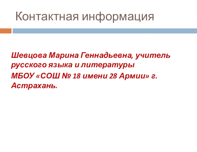 Место работы: МБОУ «СОШ №18 имени 28 Армии»