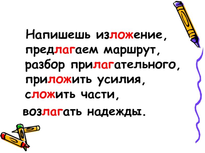 Напишешь изложение, предлагаем маршрут, разбор прилагательного, приложить усилия, сложить