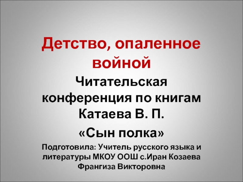 Учитель русского языка и литературы МКОУ ООШ с.Иран Козаева Франгиза Викторовна