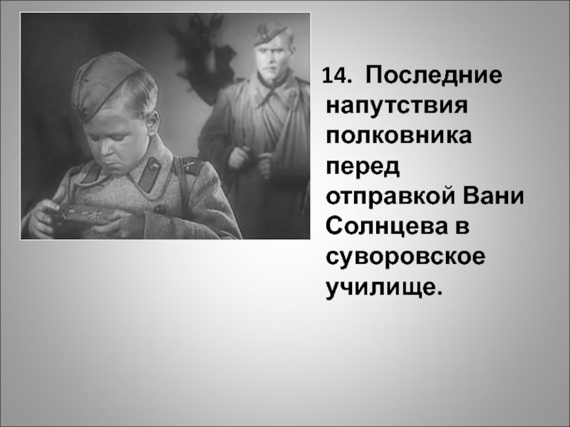 14. Последние напутствия полковника перед отправкой Вани Солнцева в