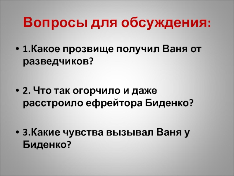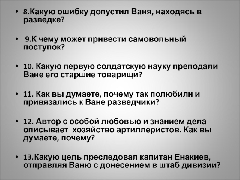 11. Как вы думаете, почему так полюбили и привязались к Ване разведчики?