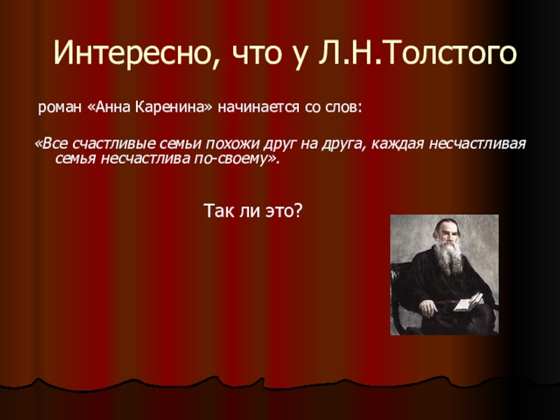 счастливые семьи похожи друг на друга, каждая несчастливая семья несчастлива по-своему».