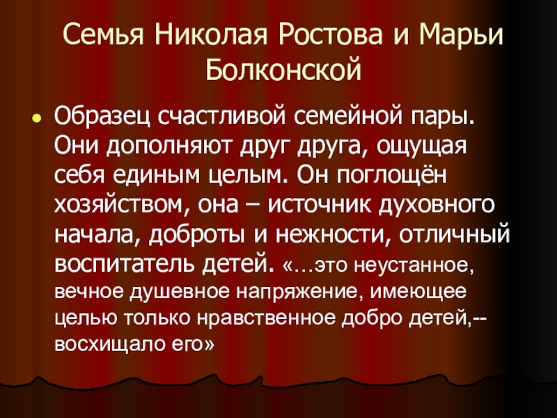 Слайд 13Семья Николая Ростова и Марьи Болконской