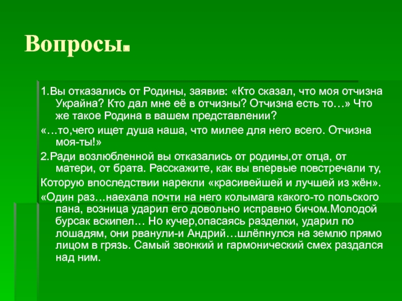 1.Вы отказались от Родины, заявив: «Кто сказал, что моя отчизна Украйна?