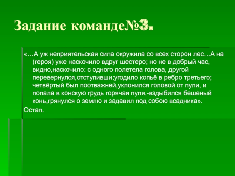 «…А уж неприятельская сила окружила со всех сторон лес…А на(героя)