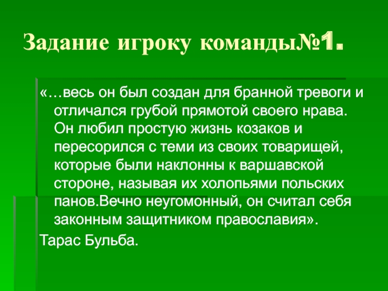 Слайд 9Задание игроку команды№1.