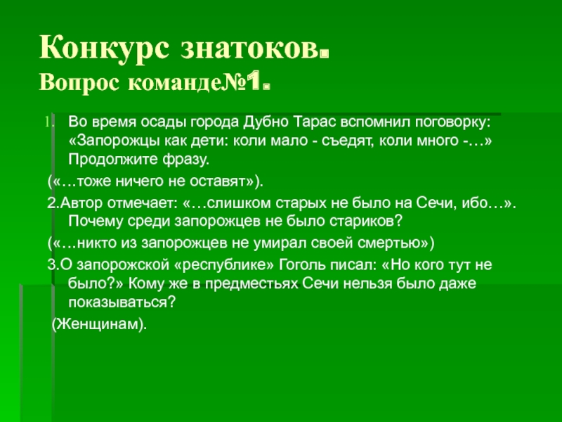 3.О запорожской «республике» Гоголь писал: «Но кого тут не было?» Кому же в предместьях Сечи нельзя было даже показываться?