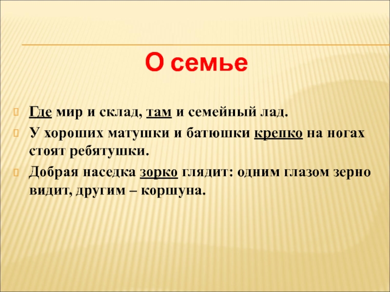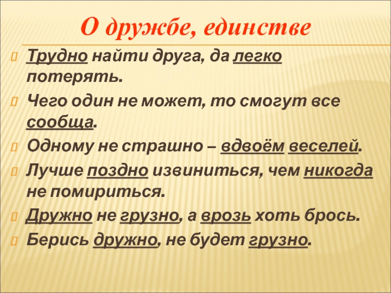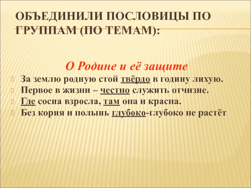 Слайд 14ОБЪЕДИНИЛИ ПОСЛОВИЦЫ ПО ГРУППАМ (ПО ТЕМАМ):
