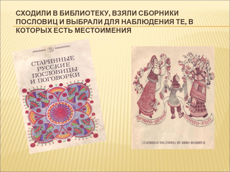 Слайд 13СХОДИЛИ В БИБЛИОТЕКУ, ВЗЯЛИ СБОРНИКИ ПОСЛОВИЦ И ВЫБРАЛИ ДЛЯ НАБЛЮДЕНИЯ ТЕ,