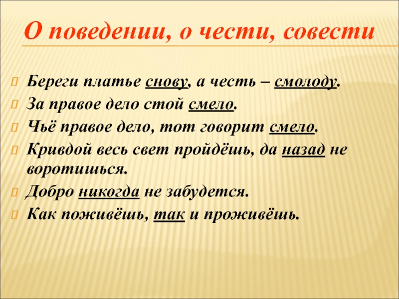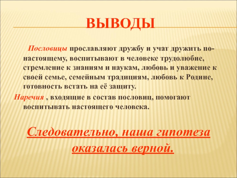 Наречия , входящие в состав пословиц, помогают воспитывать настоящего человека.