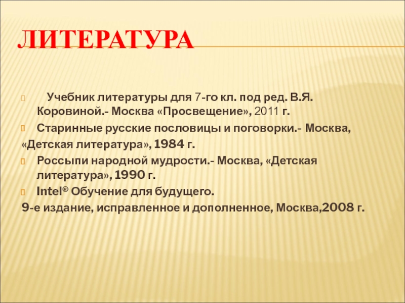 Учебник литературы для 7-го кл. под ред. В.Я.Коровиной.- Москва