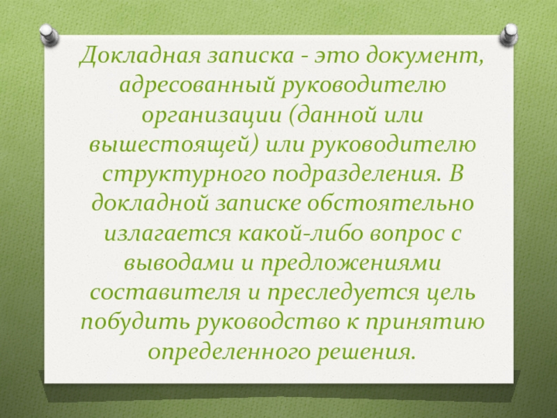 Слайд 12Докладная записка - это документ, адресованный руководителю организации (данной или вышестоящей)