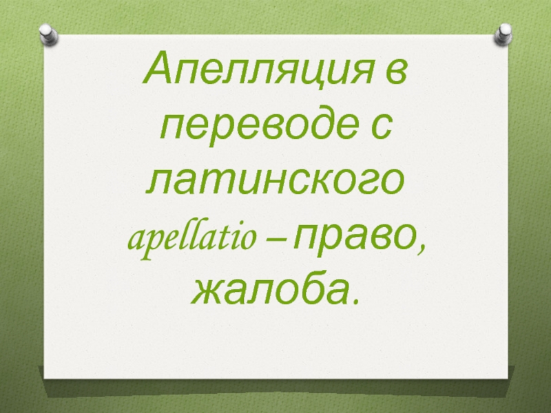 Слайд 6Апелляция в переводе с латинского apellatio – право, жалоба.