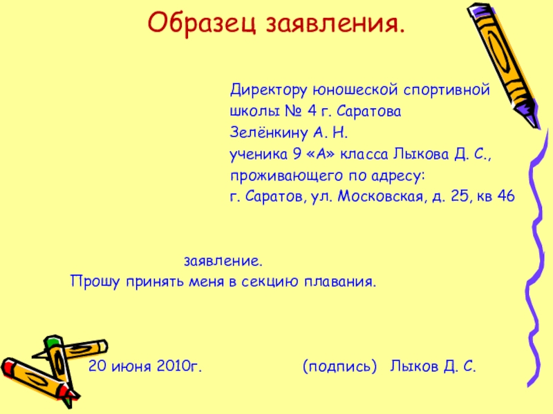 Слайд 7Образец заявления.