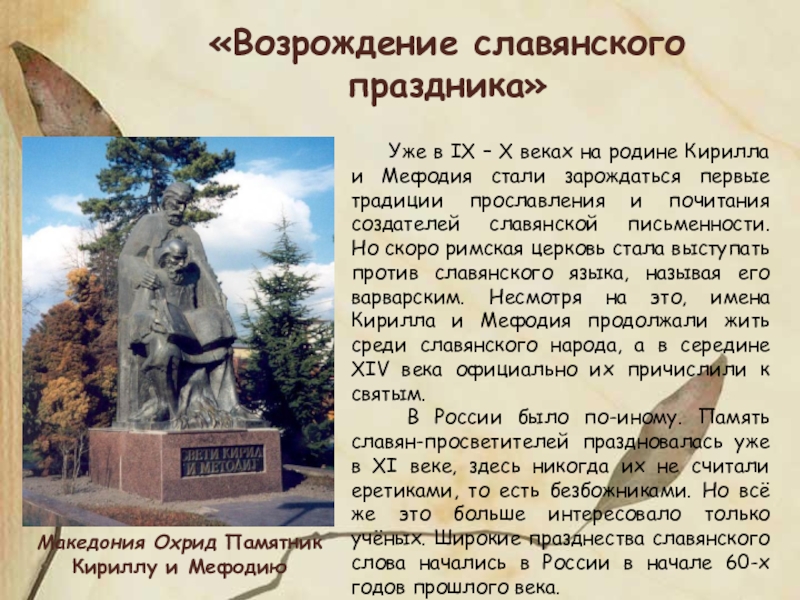 Всю свою жизнь солоунские братья посвятили учению, знаниям, служению славянам. Они не придавали особого значения ни богатству, ни почестям, ни славе, ни карьере.