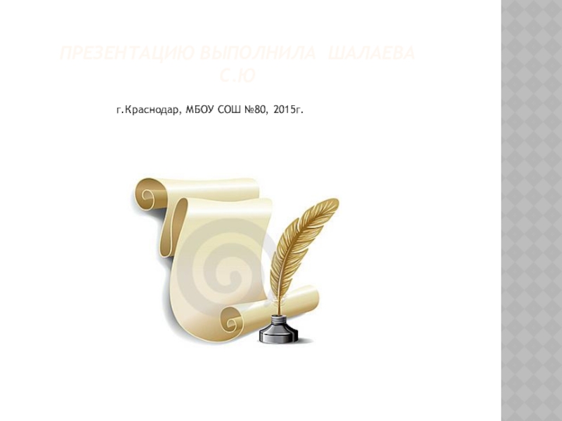 Презентацию выполнила Шалаева С.Юг.Краснодар, МБОУ СОШ №80, 2015г.