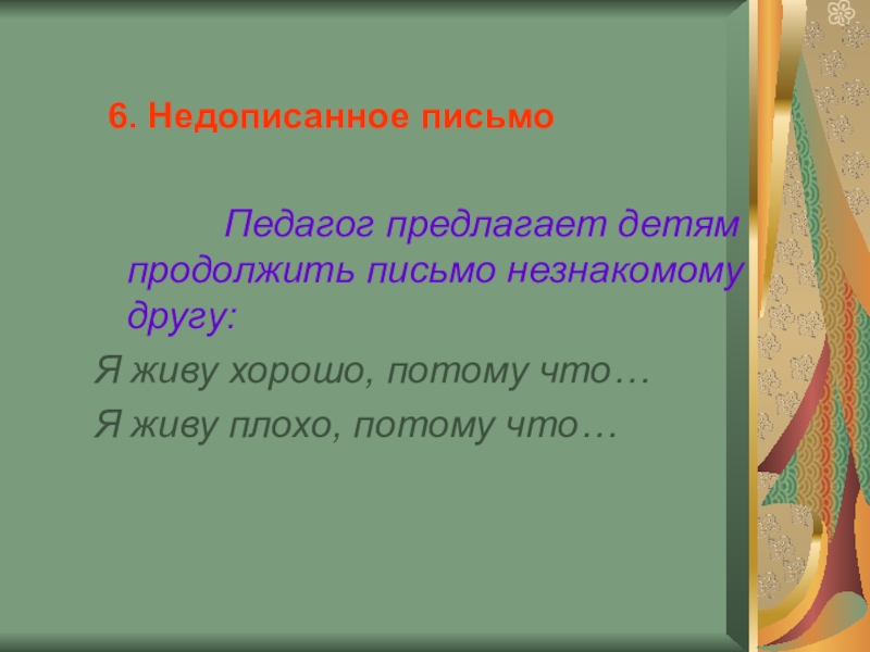 Педагог предлагает детям продолжить письмо незнакомому другу:
