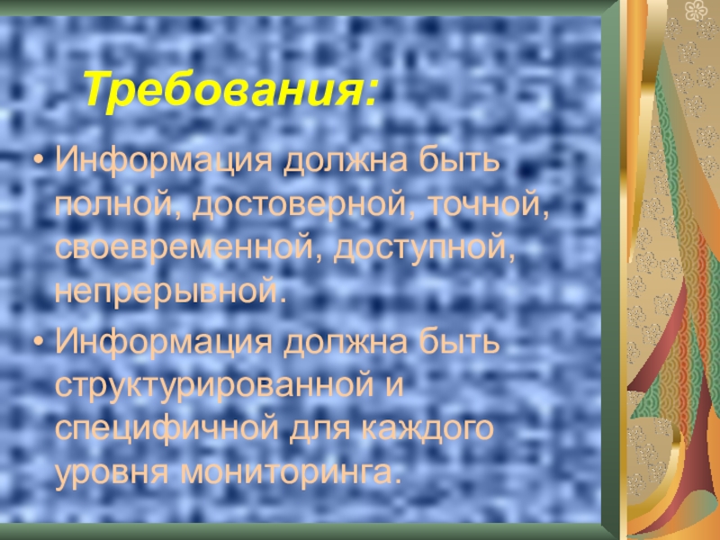 Информация должна быть полной, достоверной, точной, своевременной, доступной, непрерывной.