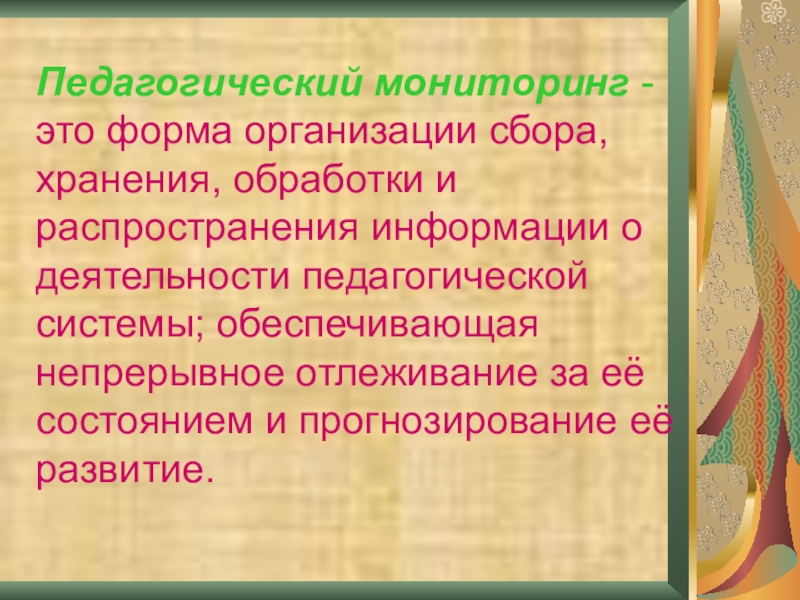 Слайд 6Педагогический мониторинг - это форма организации сбора, хранения, обработки и распространения