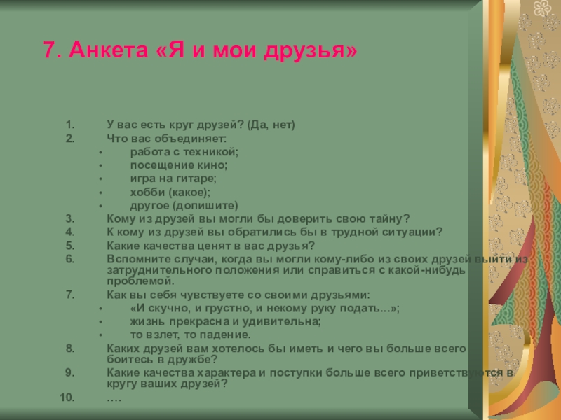 Каких друзей вам хотелось бы иметь и чего вы больше всего