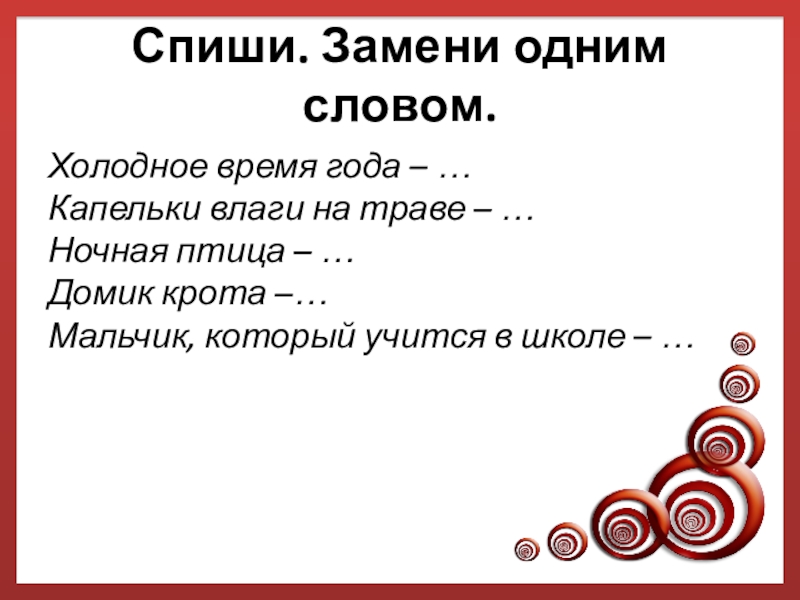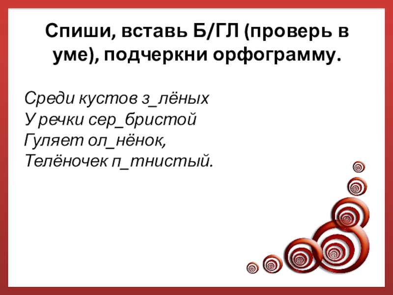 С_ва, кл_сты, ч_жи, с_л_вей, л_бёдушка, жур_вли, зм_я, _жиха, л_сица.