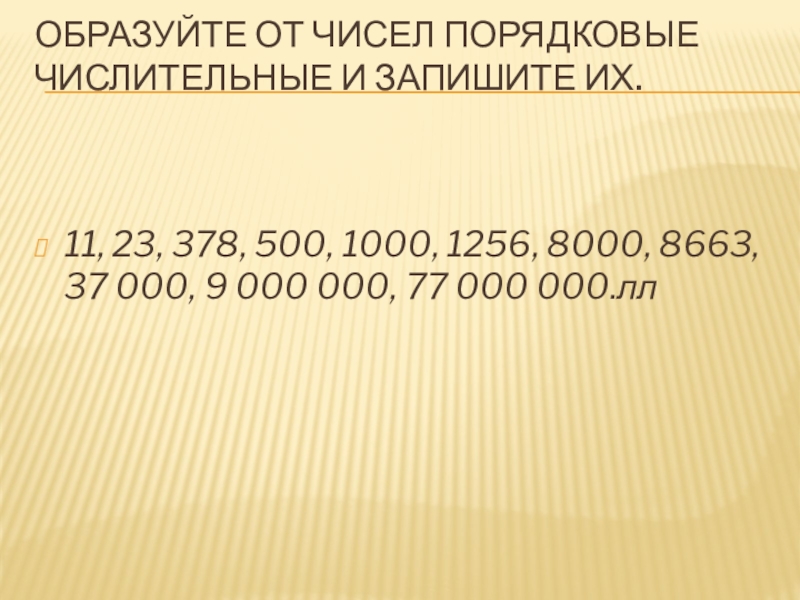 Слайд 3Образуйте от чисел порядковые числительные и запишите их.