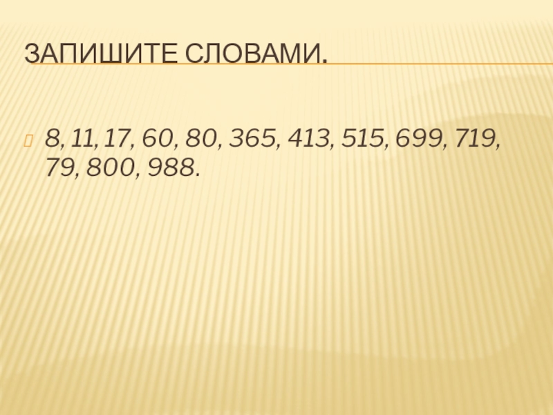 Слайд 10Вставьте пропущенные буквы. Запишите цифры словами. Определите разряд числительных.