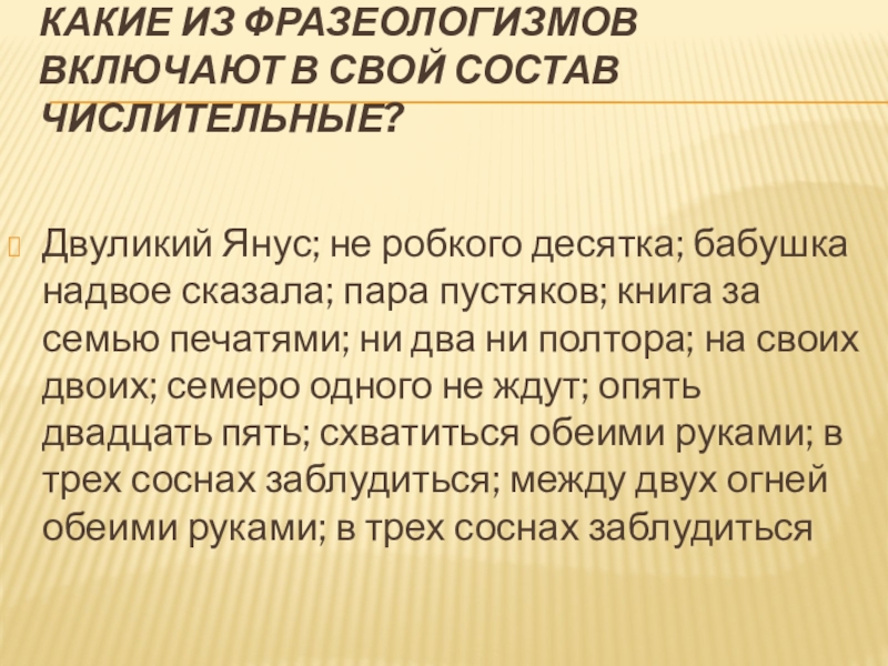 Слайд 16Какие из фразеологизмов включают в свой состав числительные?