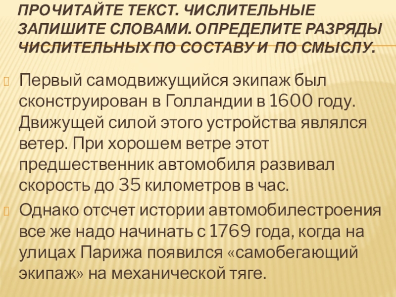 Слайд 13Прочитайте текст. Числительные запишите словами. Определите разряды числительных по составу и