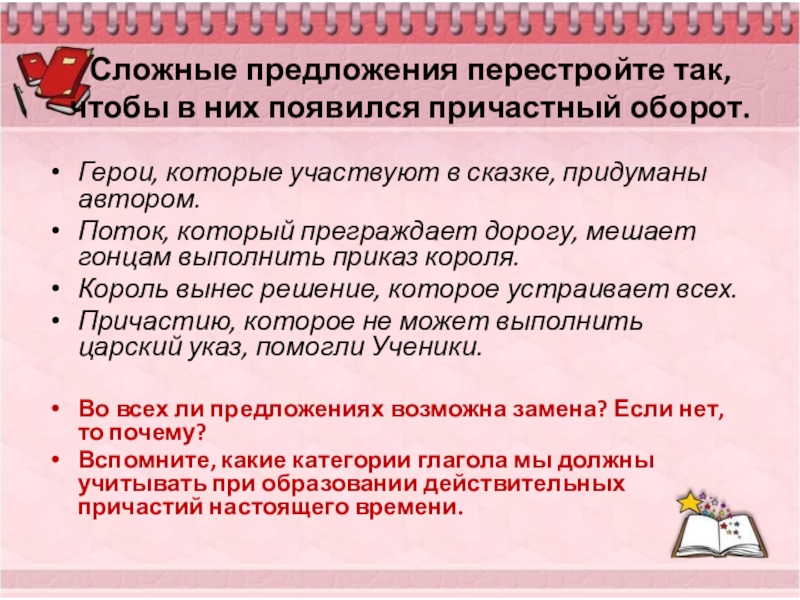 Слайд 8Замените, где можно, сложные предложения предложениями