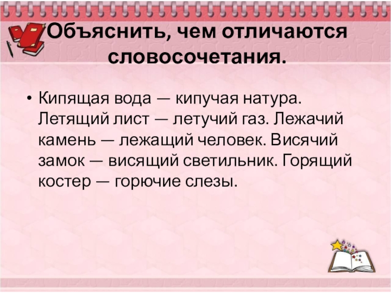 Слайд 4Объяснить, чем отличаются словосочетания.