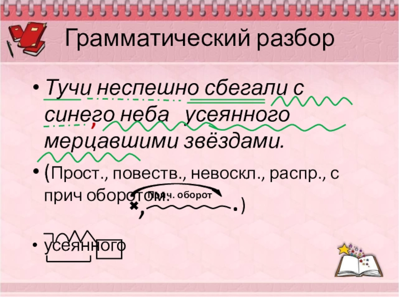 3) Последняя туча (рассеять) бури! Одна ты несёшься по ясной лазури.