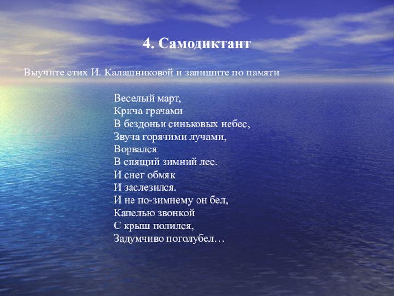 Слайд 105. Сочинение-миниатюра. Исповедь мартовского снега