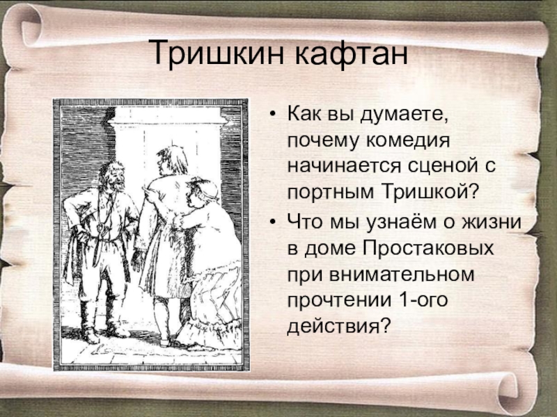Как вы думаете, почему комедия начинается сценой с портным Тришкой?