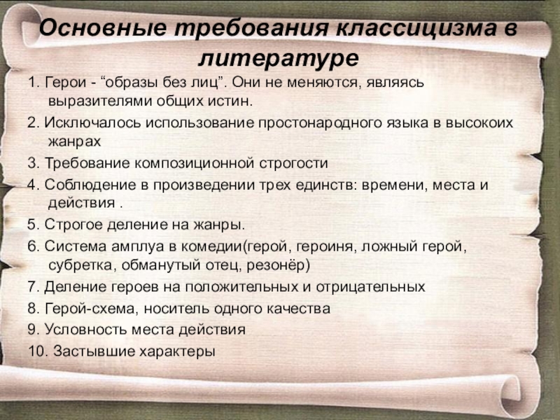 4. Соблюдение в произведении трех единств: времени, места и действия .