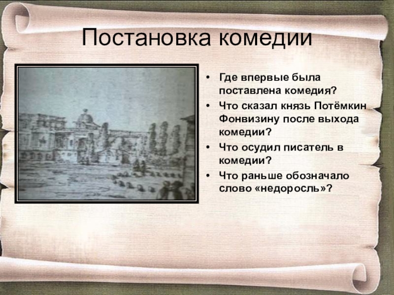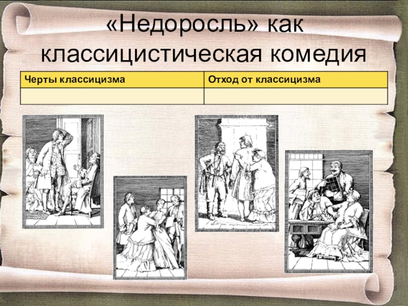 Слайд 3«Недоросль» как сатирическая комедия. Сюжет и конфликт комедии.